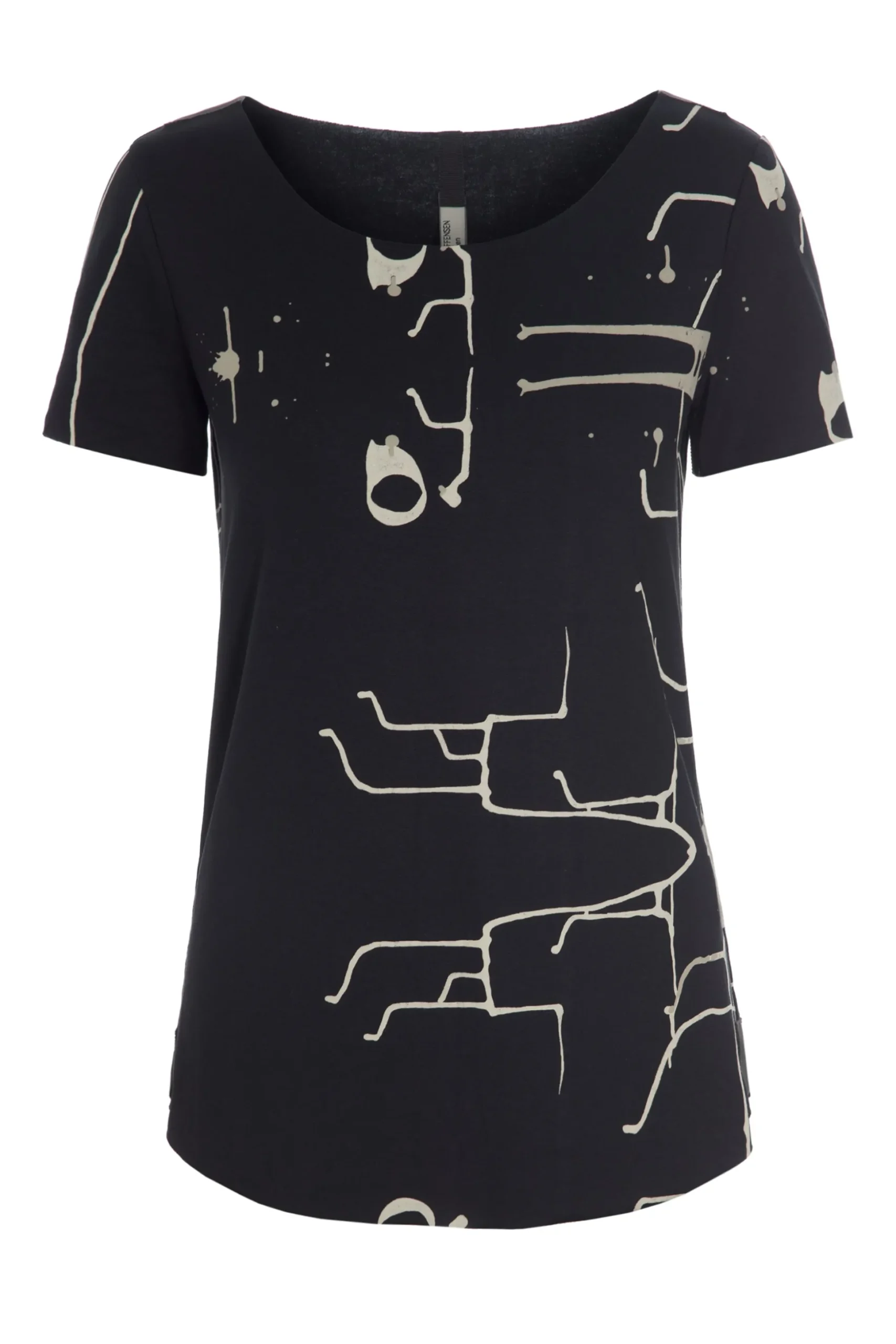 Bluse mit kurzen Ärmeln und Rundhalsausschnitt. Die Bluse ist figurbetont, ohne jedoch so eng zu sein, dass sie sich aufrollt, wenn du mit gesenktem Kopf stehst. In unserer Yoga-Kollektion haben wir uns gegen den kleinen erkennbaren Messingring mit Logo entschieden, da man auf ihm nicht schön liegen kann. Die Kanten sollen nach dem Waschen leicht rollen. Beachte, dass das Modell ART PRINT in seinem Druck EINZIGARTIG ist.