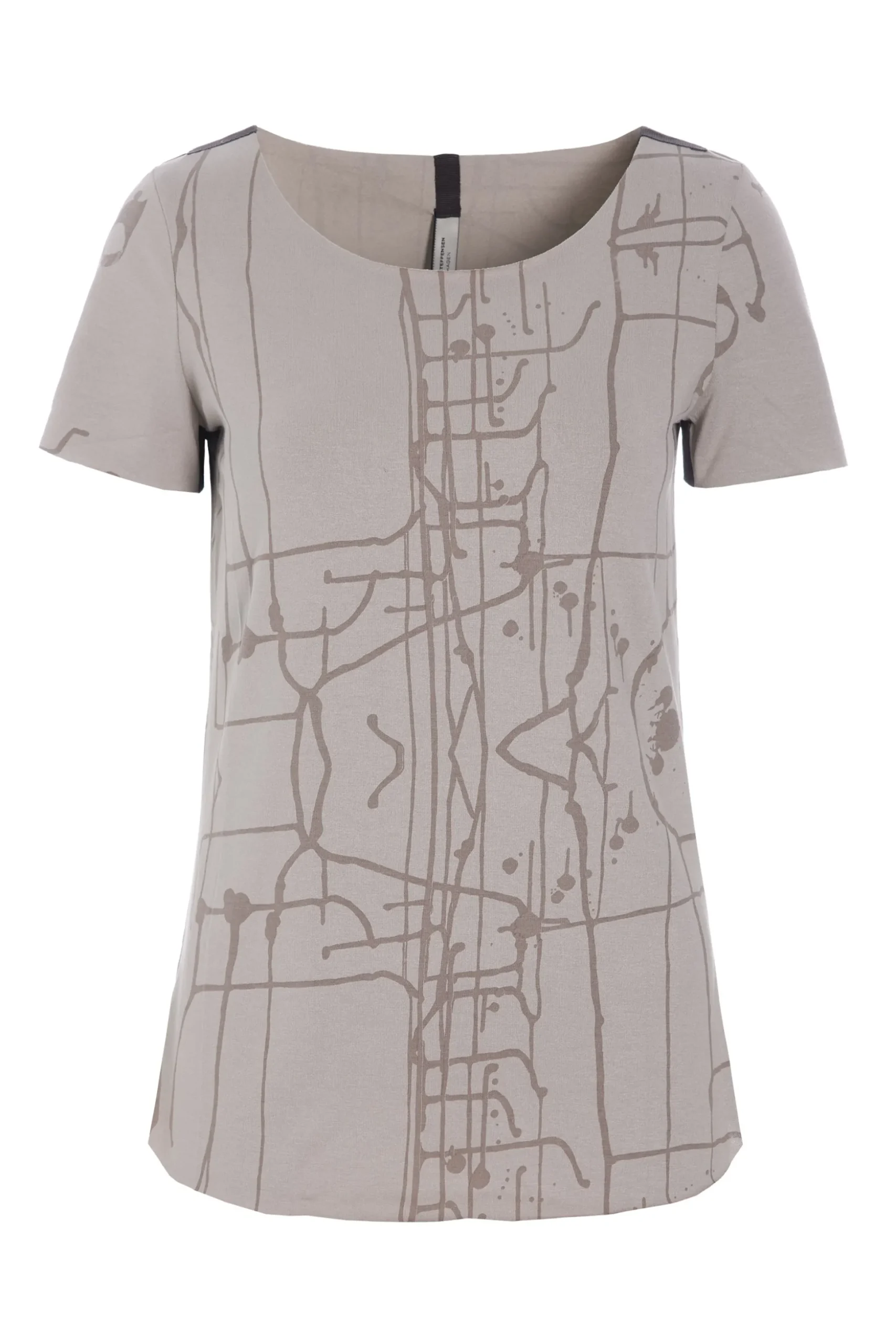 Bluse mit kurzen Ärmeln und Rundhalsausschnitt. Die Bluse ist figurbetont, ohne jedoch so eng zu sein, dass sie sich aufrollt, wenn du mit gesenktem Kopf stehst. In unserer Yoga-Kollektion haben wir uns gegen den kleinen erkennbaren Messingring mit Logo entschieden, da man auf ihm nicht schön liegen kann. Die Kanten sollen nach dem Waschen leicht rollen. Beachte, dass das Modell ART PRINT in seinem Druck EINZIGARTIG ist.