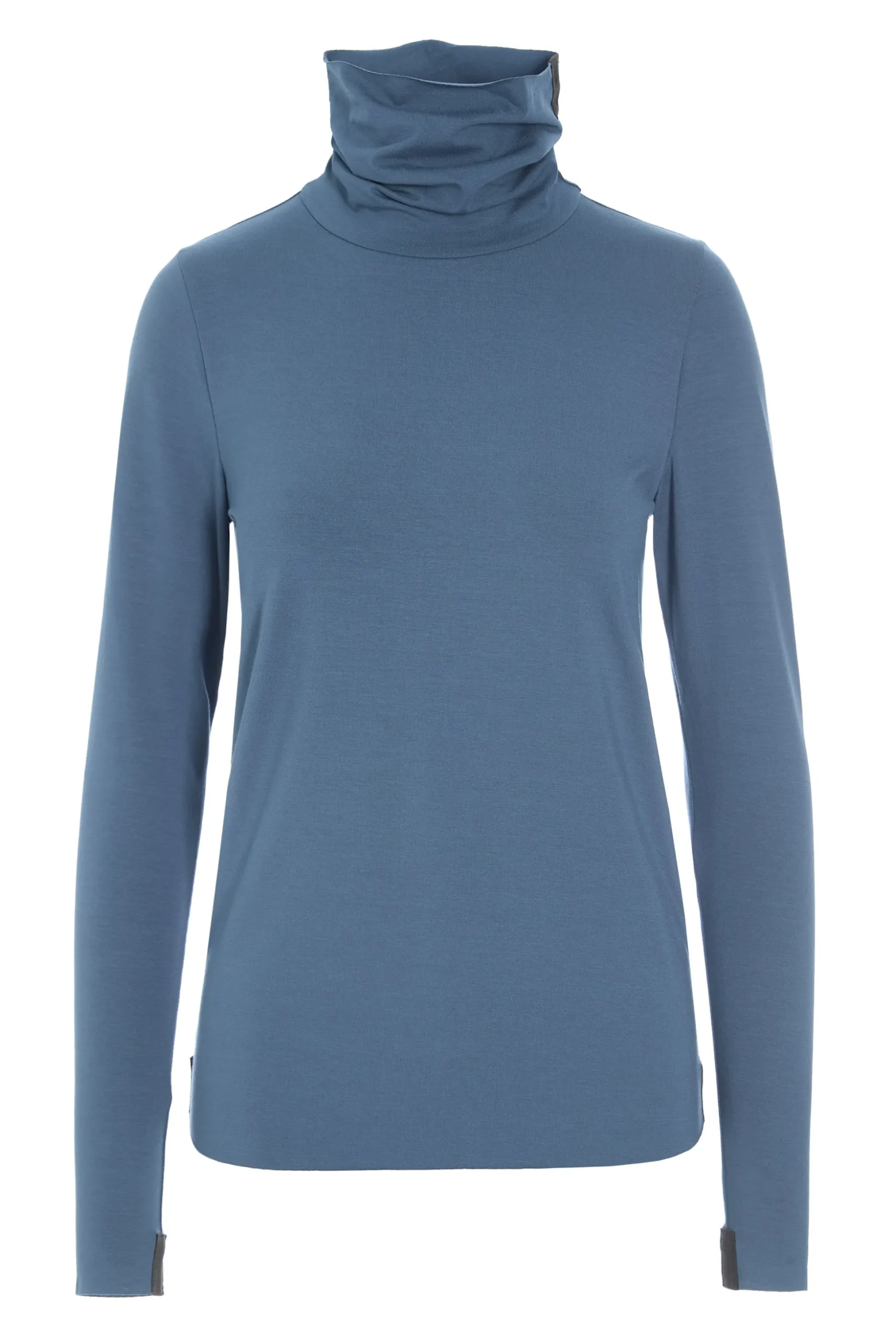 Sehr langärmelige Jersey-Bluse in eng anliegender Passform mit hohem Kragen. Der klassische hohe Kragen ist anspruchsvoll und zeitlos, und die schmalen Ärmel tragen zum eleganten Look bei.