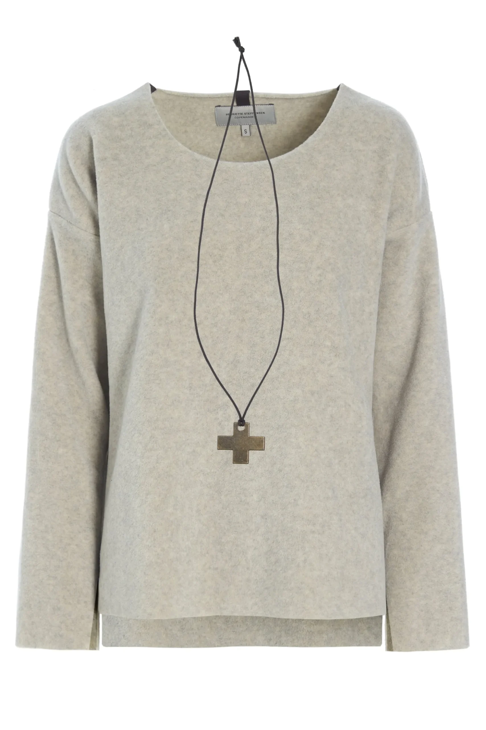 Weicher Fleecepullover mit Rundhalsausschnitt im Boxy-Style mit einer stylischen Halskette. Hinten ist der Pullover etwas länger, er ist leicht und bequem und kann gut zu Jeans, Anzughosen oder Röcken gestylt werden.