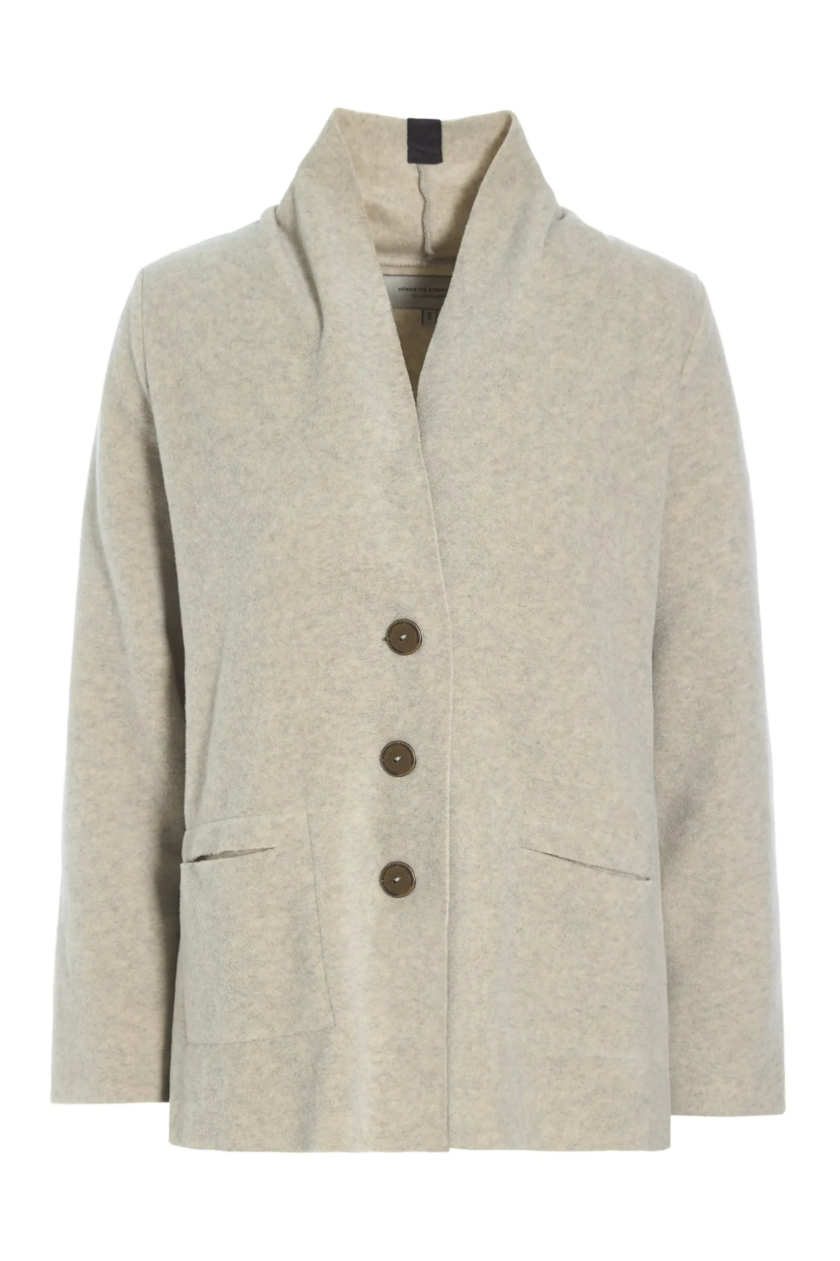 Kurze Strickjacke mit Schalkragen, Taschen und Knopfleiste. Kurze Version des Bestsellers 7162. Wählen Sie Ihre reguläre Größe wie das Model oder entscheiden Sie sich für eine übergroße Passform für eine lockerere Passform.