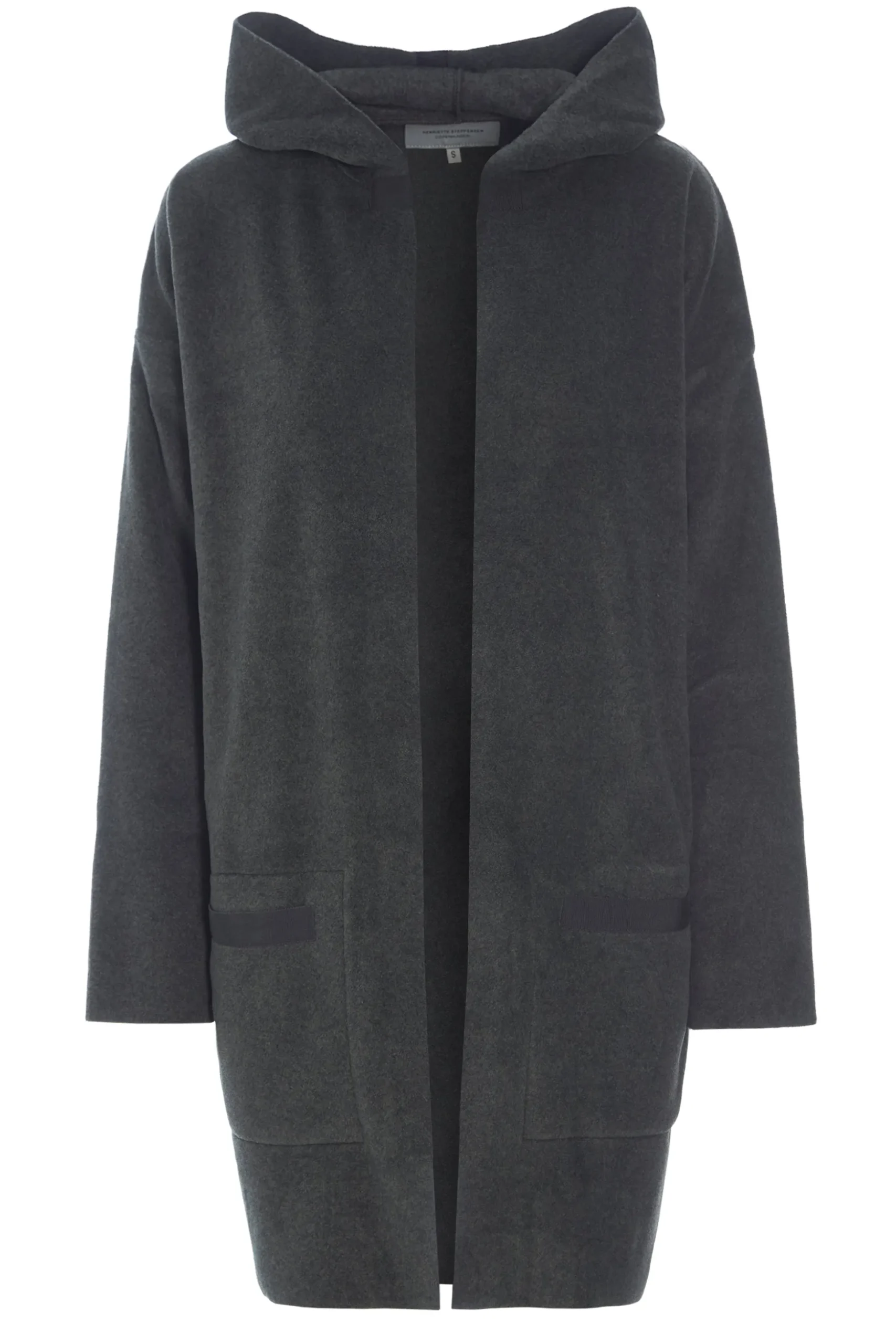 Strickjacke mit Kapuze, Taschen und Schlitzen an den Seiten. Perfekt zu tragen mit einer Hose oder einem Rock und einem schönen T-Shirt. Die Strickjacke ist offen und verleiht ihr einen sportlichen Look, aber mit einem Gürtel kann für eine femininere Silhouette gesorgt werden.