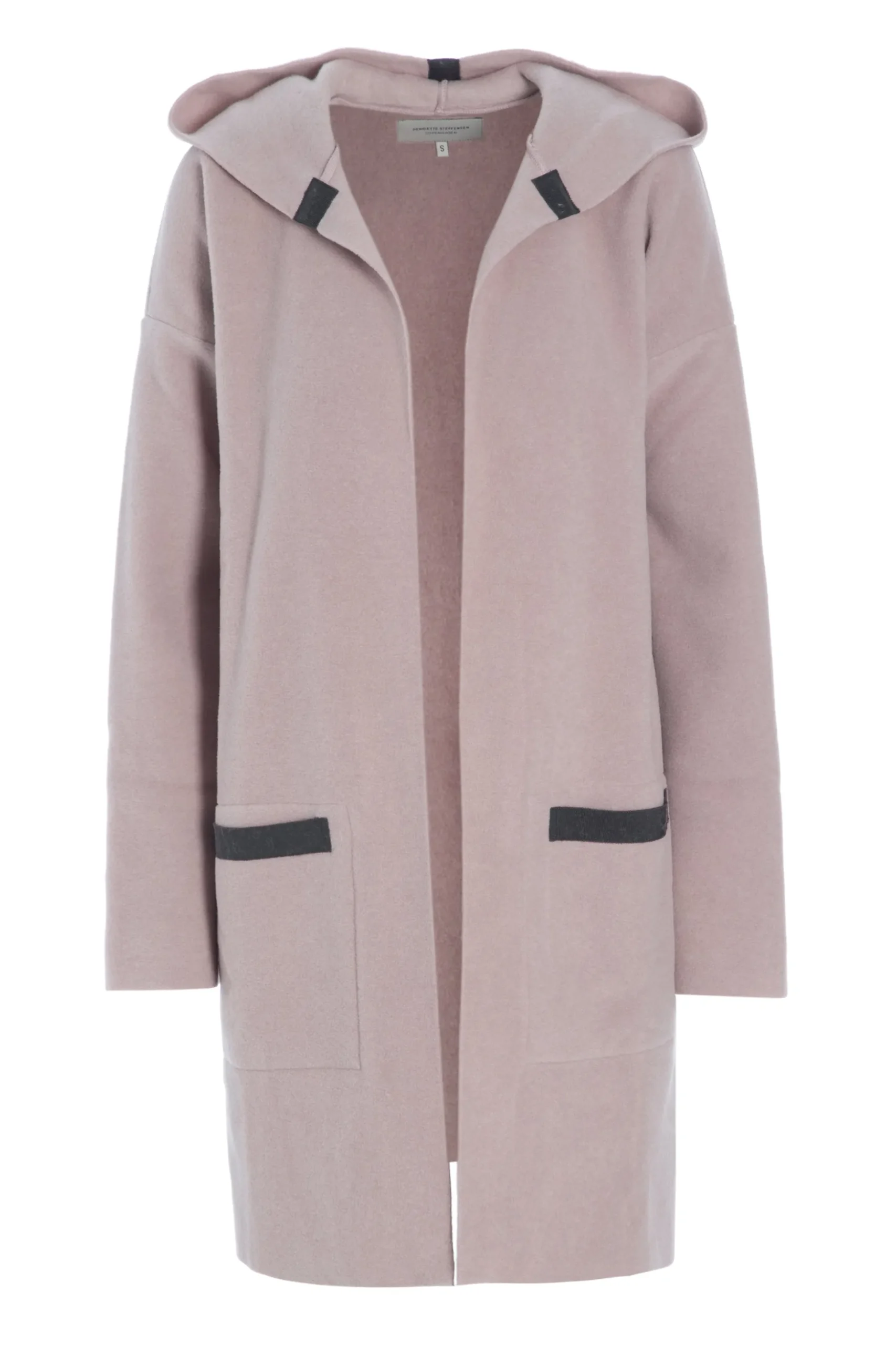 Strickjacke mit Kapuze, Taschen und Schlitzen an den Seiten. Perfekt zu tragen mit einer Hose oder einem Rock und einem schönen T-Shirt. Die Strickjacke ist offen und verleiht ihr einen sportlichen Look, aber mit einem Gürtel kann für eine femininere Silhouette gesorgt werden.