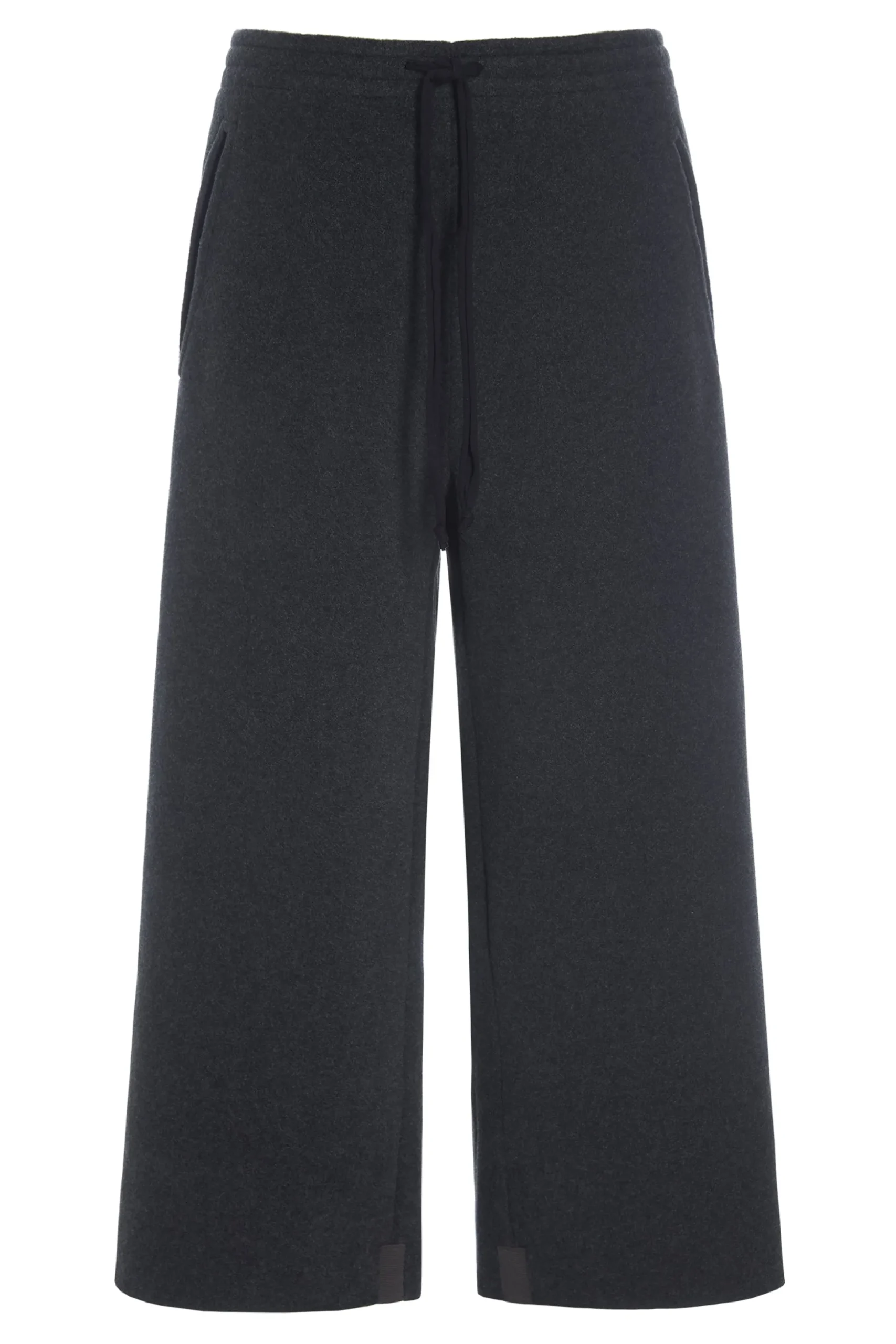 Fleecehose mit weiten Beinen in mittlerer Wadenlänge. Die Hose hat Taschen an den Seiten und wird vorne gebunden.