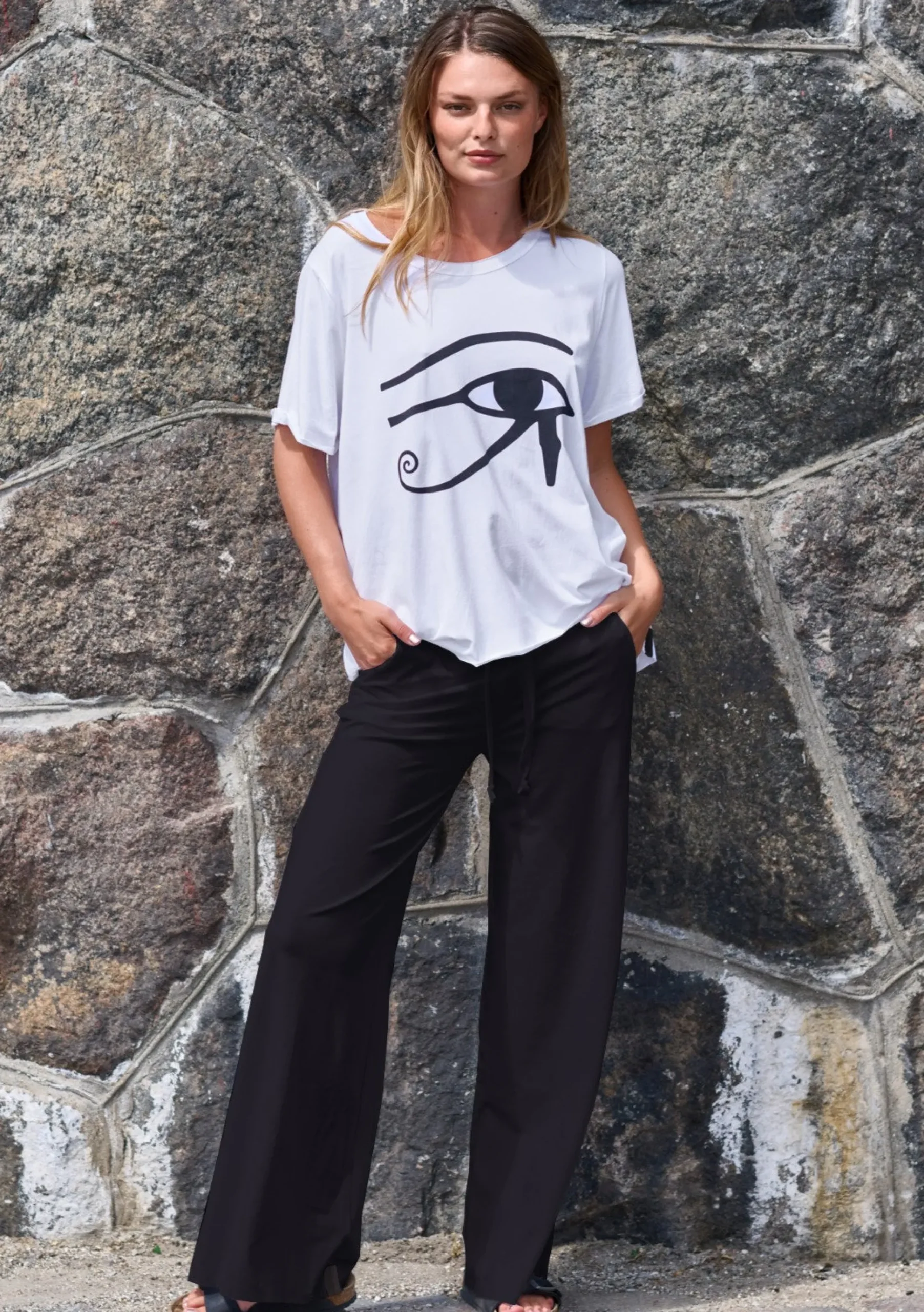 Designfavorit – lässige Jersey-Hose mit weitem Bein, Seitentaschen und weichem Gummibund. Genießen Sie den weichen Jersey in diesem absolut lässigen Stil.