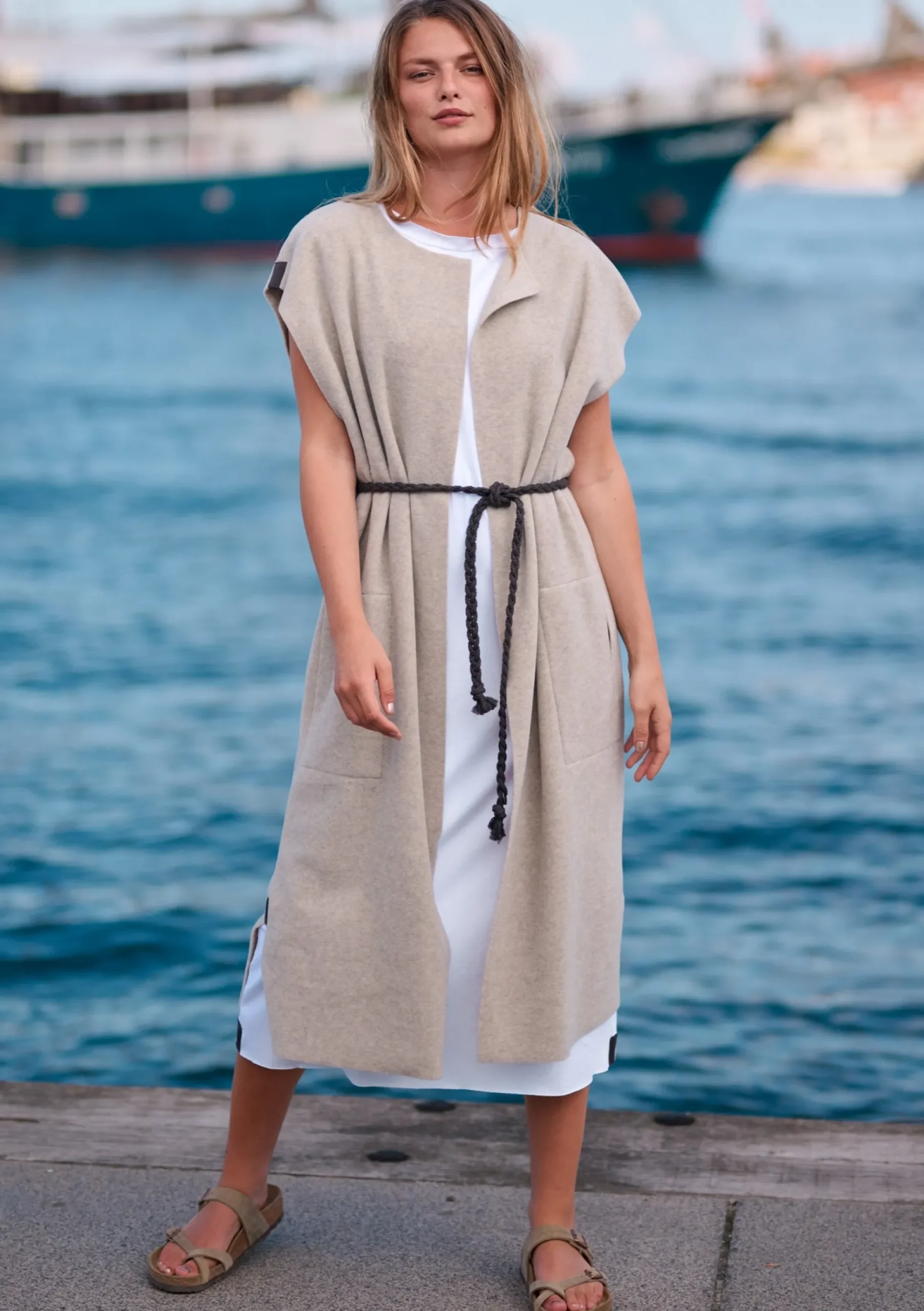 Die Bindegürtel ist handgefertigt aus geflochtenen Schnüren, die in Dänemark hergestellt werden.
