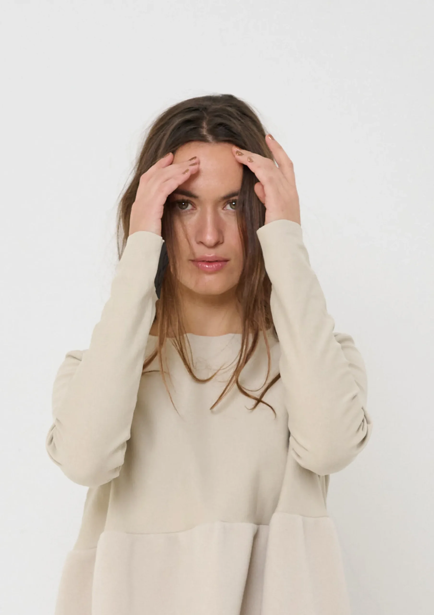 Der Rock hat zusätzliche Weite als Kontrast zum Oberteil, das schmaler ist. Stilvoll mit Sneakers, Stiefeln oder High Heels! Ein vielseitiges Kleid.