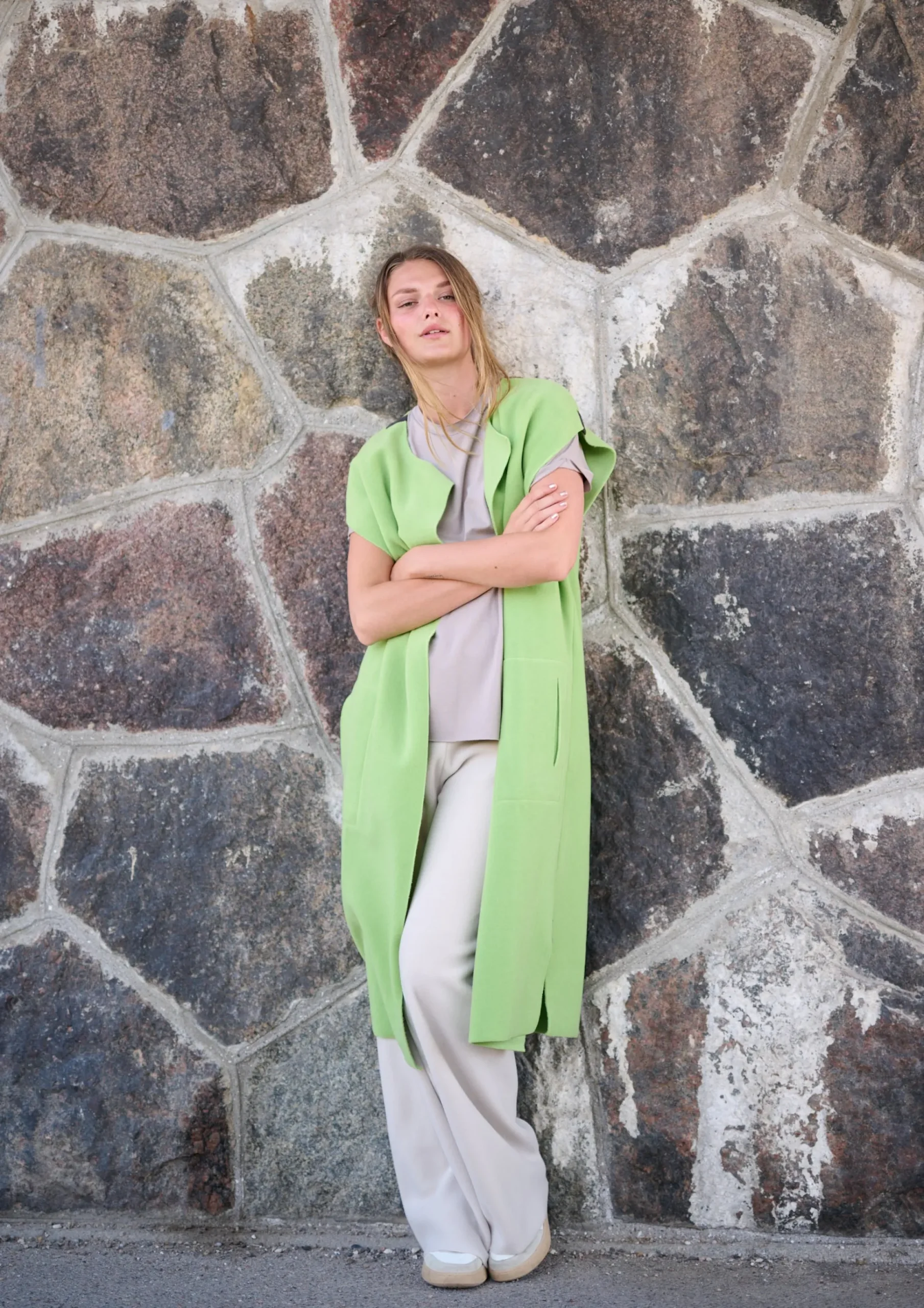 Langes Weste in lockerer Passform mit großen Taschen, Seitenschlitzen und großen Armausschnitten, die es ermöglichen, sie mit einem Pullover darüber zu stylen.