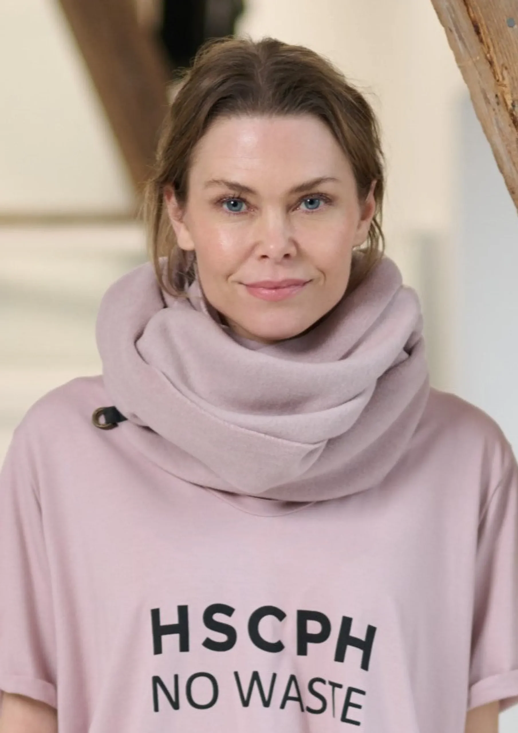 Unser Schlauchschal besteht aus unserem weichen Fleece-Material und ist mit einem Logo-Ring und einem handgewebten Grosgrain-Band versehen.
