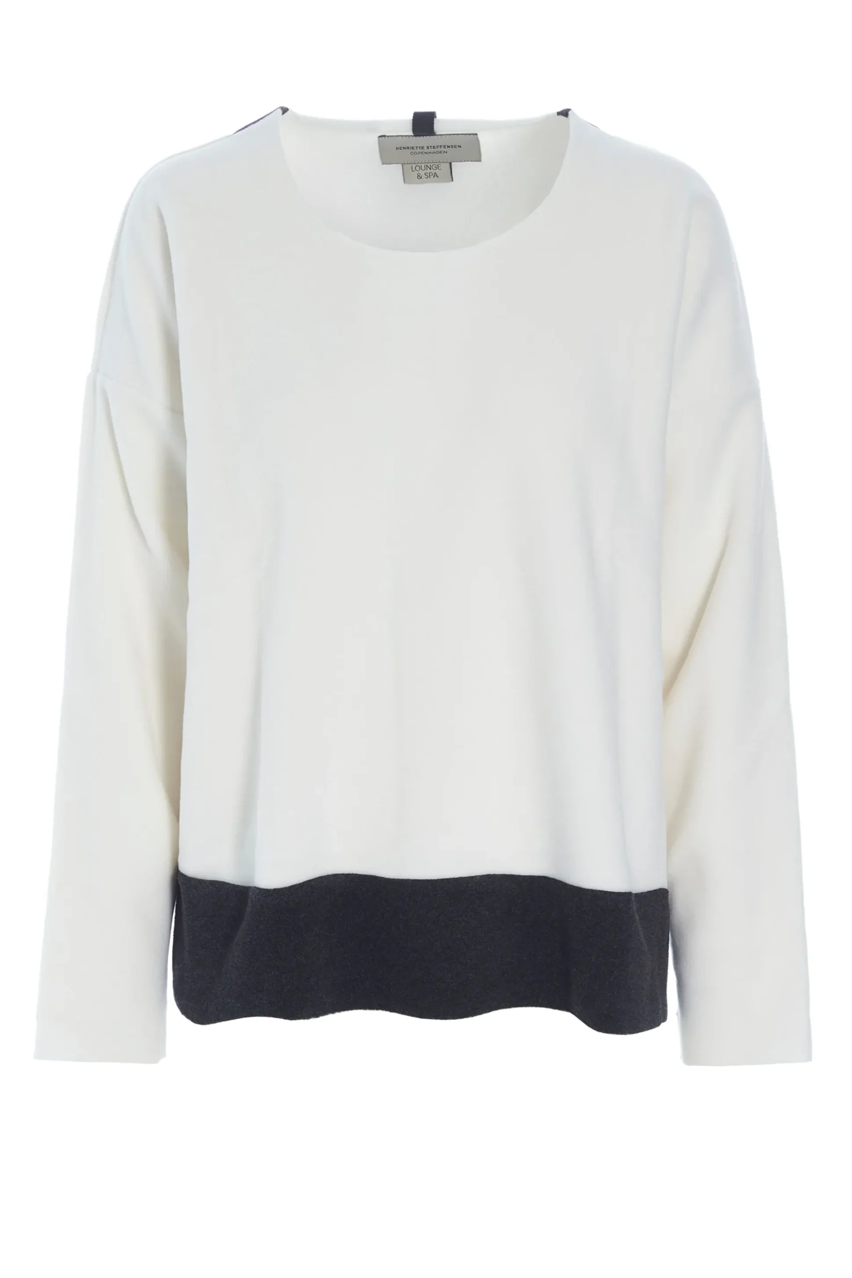 Übergröße Bluse mit Rundhalsausschnitt und schmalen Ärmeln. Onesize Passform.