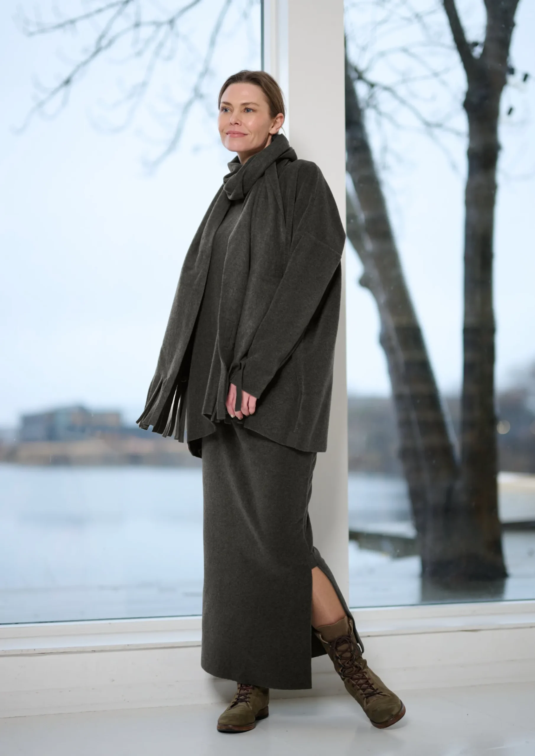 Langer Fleece-Rock mit Schlitz an der Seite. Spüren Sie den Komfort und die Gemütlichkeit unseres charakteristischen Fleeces in einem vielseitigen Design, das sich beim Sitzen nicht hochzieht oder unangenehm um den Bauch zieht.