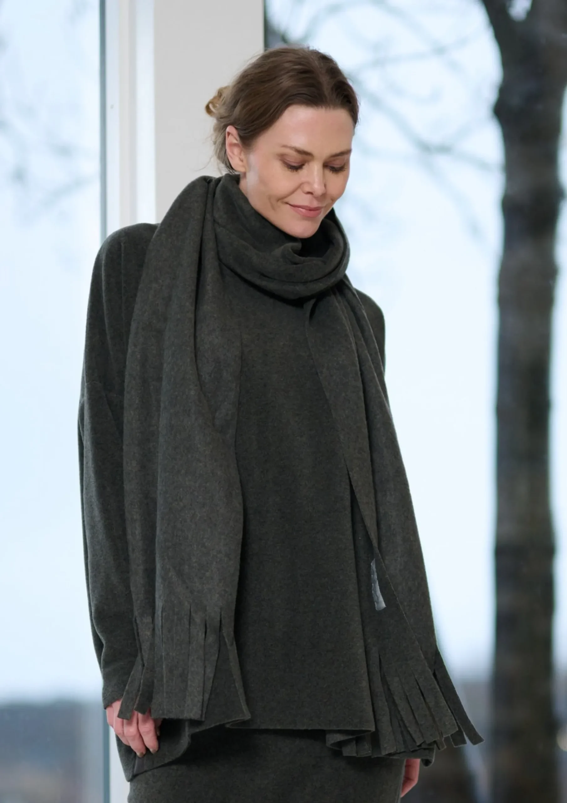 Klassischer langer Schal mit extra langen Fransen, die jedem Outfit eine elegante Note verleihen.
