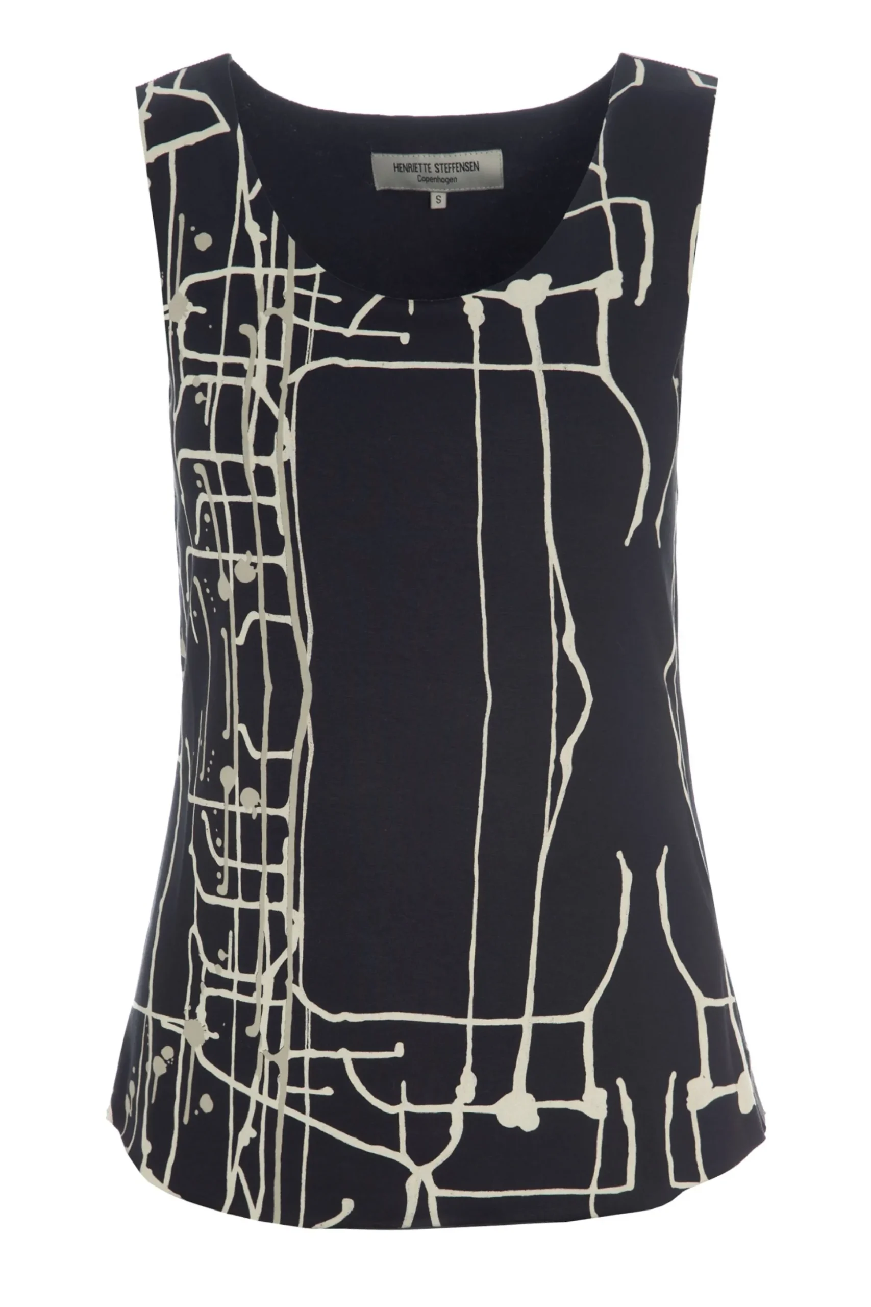 Trainingsoberteil ohne Ärmel, figurbetont, ohne so eng zu sein, dass es sich aufrollt, wenn du mit gesenktem Kopf stehst. In unserer Yoga-Kollektion haben wir uns gegen den kleinen Messingring mit Logo entschieden, da man auf ihm nicht schön liegen kann. Die Kanten sollen nach dem Waschen leicht rollen. Beachte, dass das Modell ART PRINT in seinem Druck EINZIGARTIG ist.