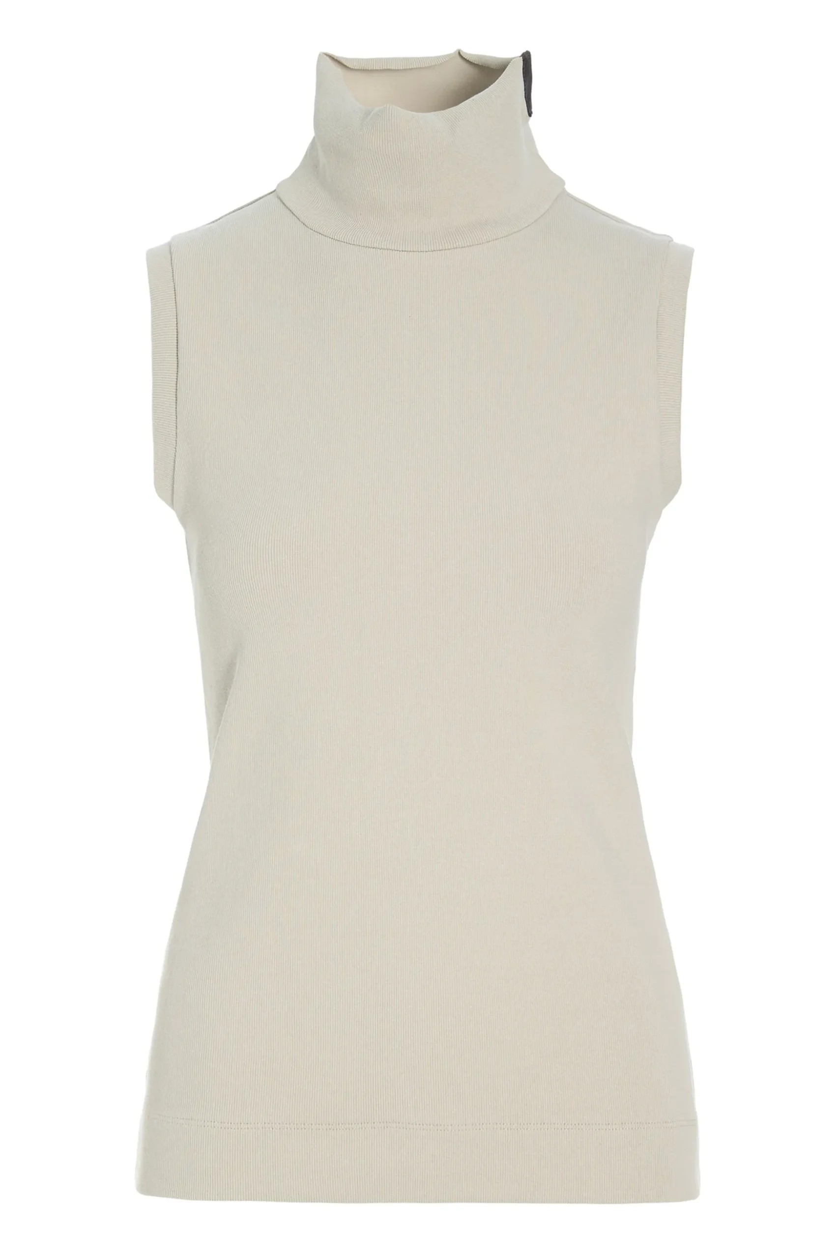 Schickes, figurbetontes Oberteil ohne Ärmel und mit einem hohen Rundhalsausschnitt. Der elegante Look des Oberteils macht es perfekt unter einem Blazer.