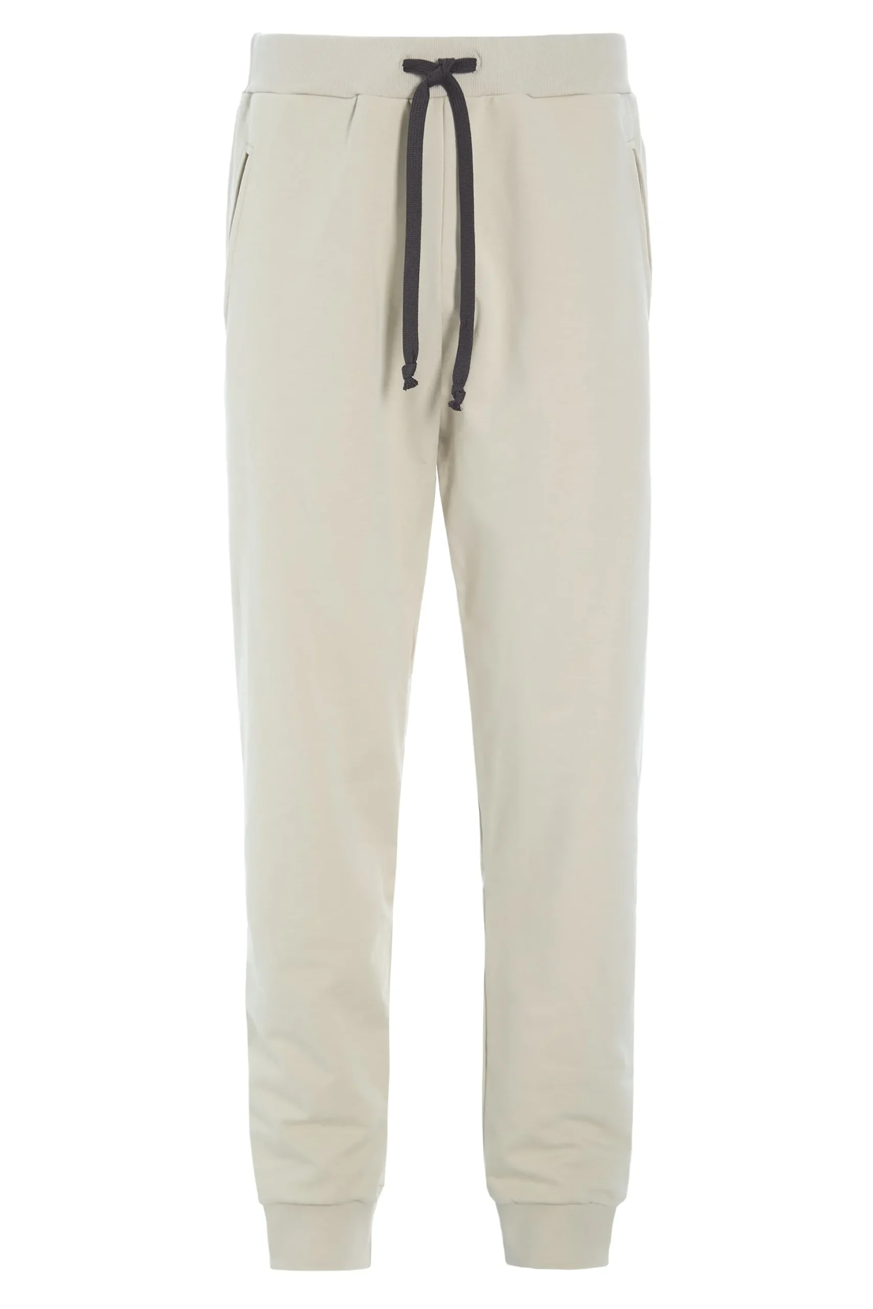 Jogginghosen mit Seitentaschen und lockerem Rippbund an den Knöcheln. Rippbund mit Elastik und Kordelzug in der Taille. Ein klassisches Paar für Tage zu Hause oder wenn du eine extra schöne Jogginghose brauchst.