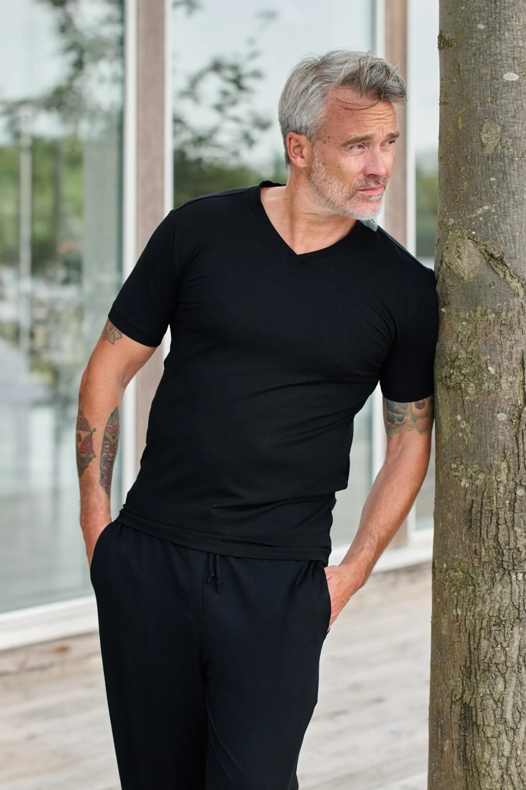Klassisch mit einem Twist, dieses T-Shirt mit V-Ausschnitt ist ein go-to Stil, der für jede Gelegenheit auf- oder abgekleidet werden kann.