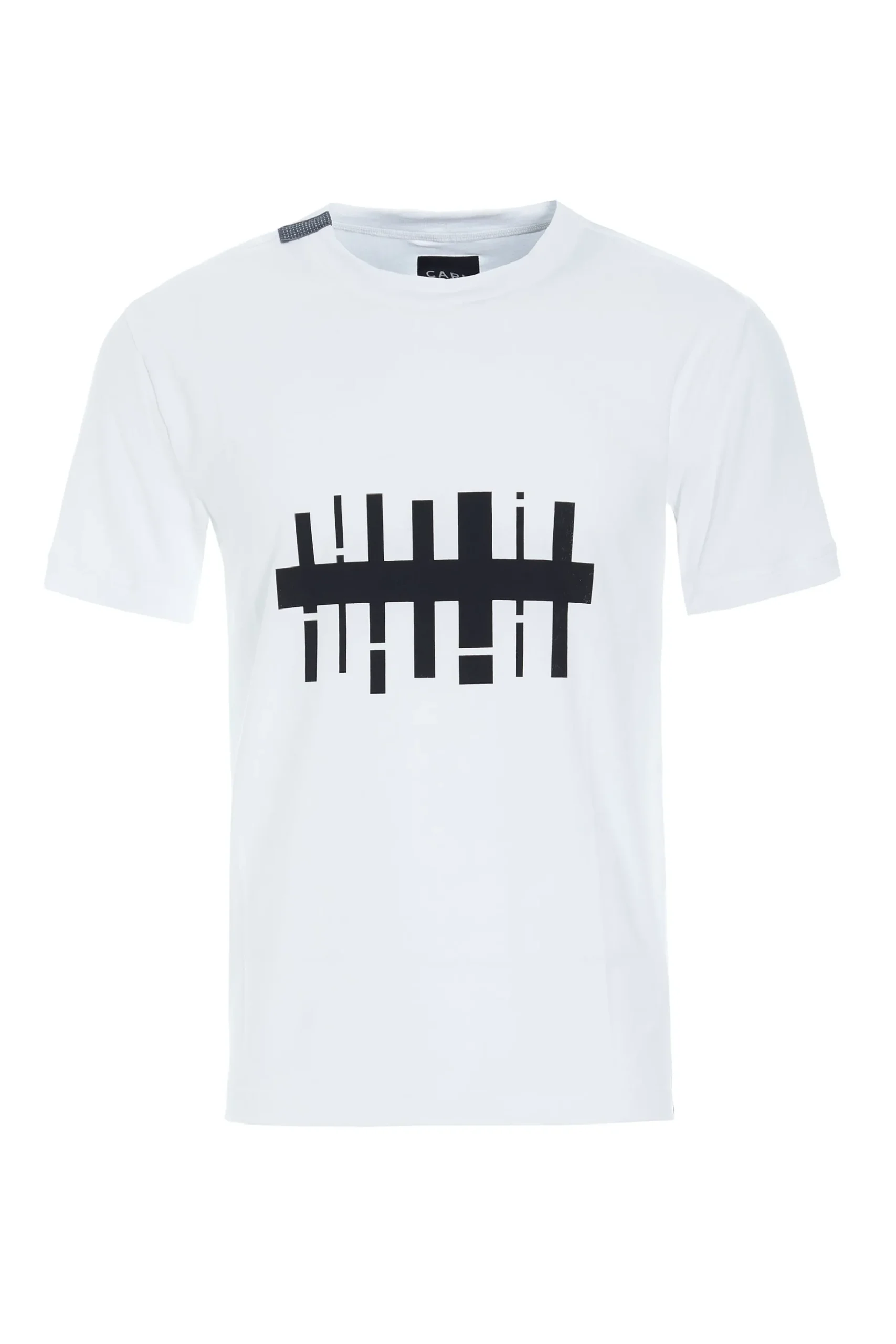 Luxus-T-Shirt mit grafischem Druck Rundhalsausschnitt und kurzen Ärmeln. Der Ärmel ist mit einem kleinen Rippenrand versehen, der sicherstellt, dass der Ärmel die Form hält. Sehr weiche Qualität, die nach dem Waschen ihre Form und weiche Haptik behält.