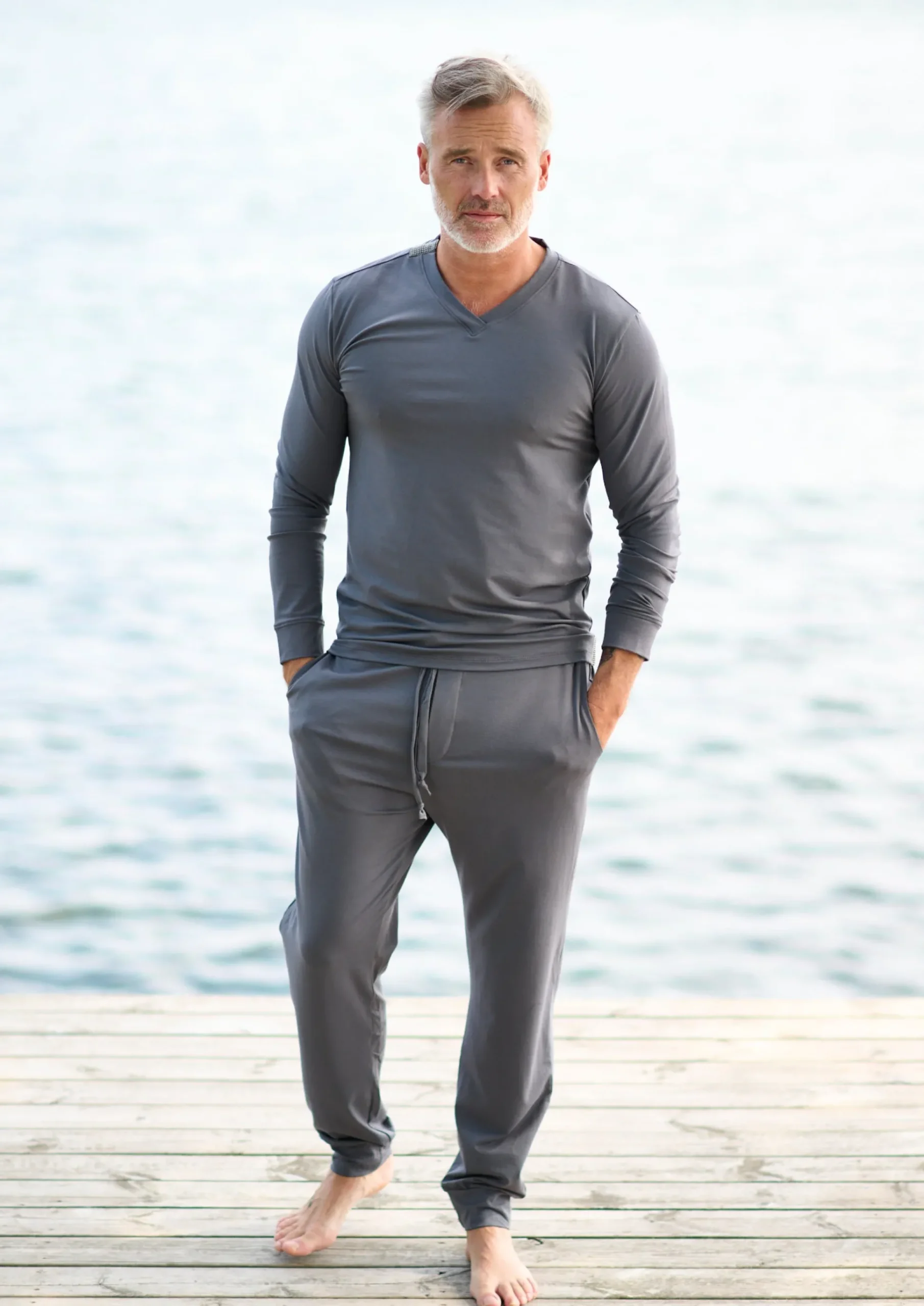 Klassisch mit einem Twist ist dieses langärmelige T-Shirt mit V-Ausschnitt ein modischer Stil, der für jede Gelegenheit aufgewertet oder abgewertet werden kann.